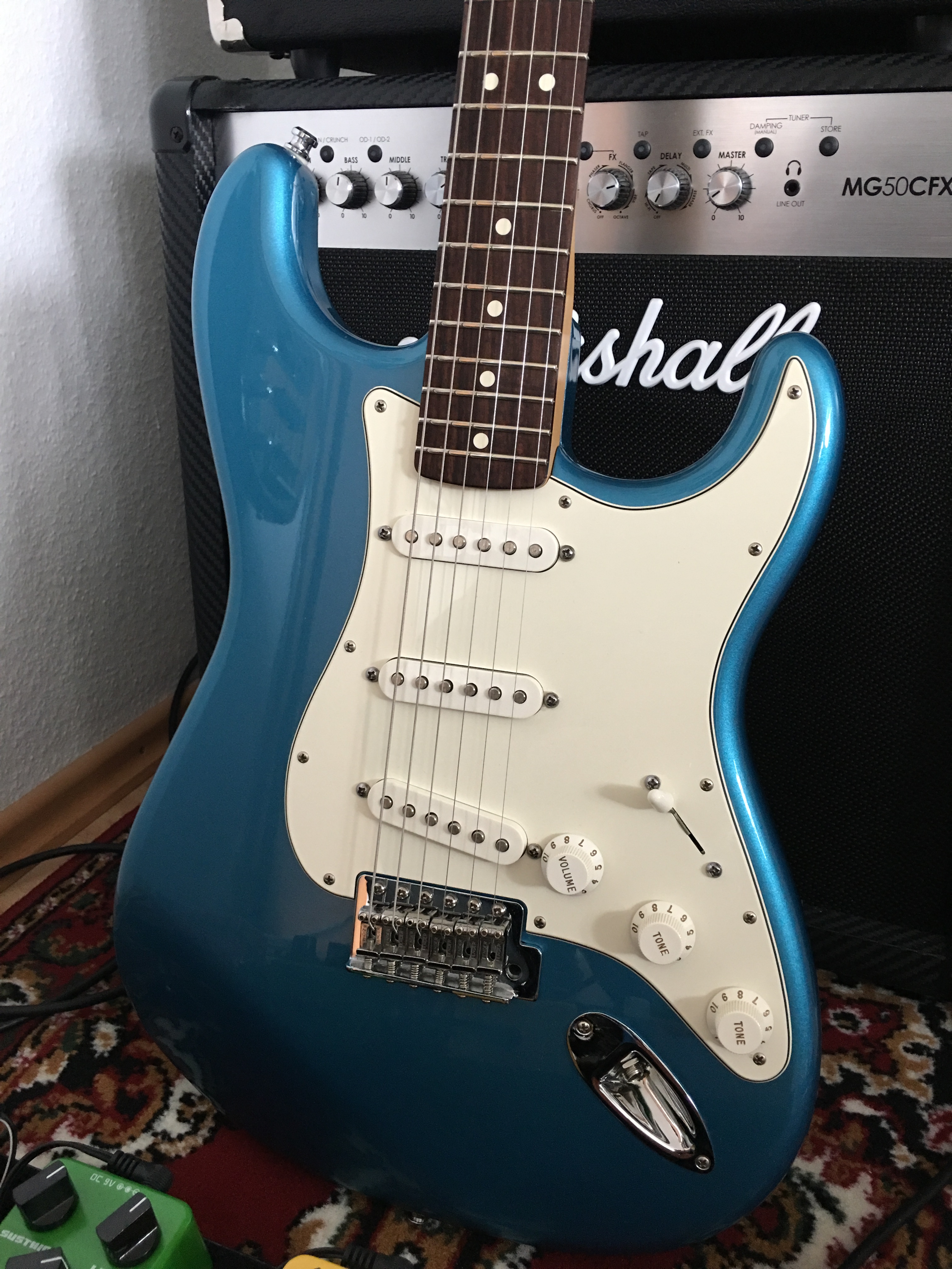 Jetzt ist das alles optimal eingestellt. Die Saitenlage und Bespielbarkeit der Strat ist perfekt. Clean klingt sie super an der Röhre und verzerrt am Marshall MG50.